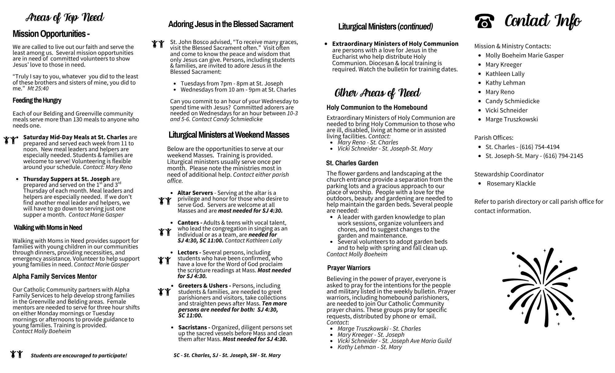 Active participation in parish life is the “secret” to feeling a sense of belonging. I encourage you to read about the various ministry opportunities here in our Catholic Community. I hope you discover where you can best share your time, talent, and treasure at St. Charles Borromeo.